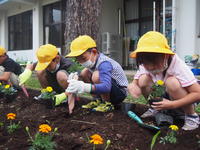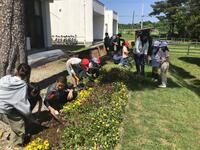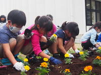 なかよし班で花壇の整備を行いました。花いっぱいの花壇になるといいんですね。