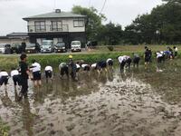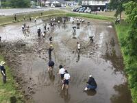 たんぼアートとふれあい祭りで使う餅米の苗を植えました。