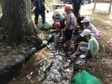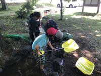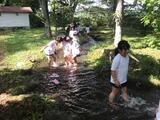 学びの森でせせらぎ遊び