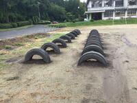 体力作り用のタイヤの設置と砂場の改修をしていただきました