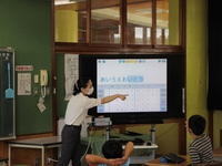 7月30日(木)6校時、那須町役場環境課の方2名に来ていただき出前授業をしていただきました。那須町の1日のゴミの量、1日のゴミを燃やすのにかかる費用など、クイズ形式で楽しく学ぶことができました。