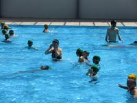 8月20日(木)2・3校時、講師の先生を迎えて出前水泳教室を行いました。泳ぐ力を伸ばしています。