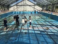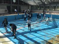 プール開きに向けて、5・6年生と地域教育コーディネーターさんで清掃を行いました。