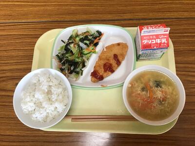麦ごはん 牛乳 白身魚フライチリソースかけ