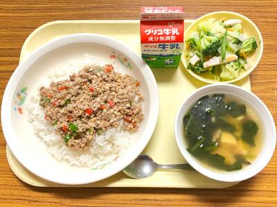 ガパオライス 牛乳 フレンチサラダ