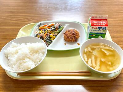 麦ご飯 牛乳 メンチカツ 鉄人サラダ