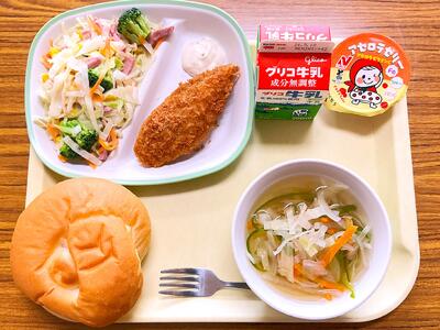 丸パン 牛乳 白身魚フライ コーンサラダ