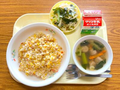 チャーハン 牛乳 バンバンジーサラダ